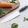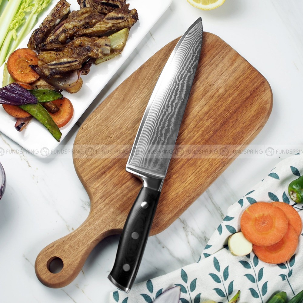 ??Professional Chef’s Knife??:?This kitchen knife is suitable for cutting bread, vegetables, fillets, or meats. This sharp knife is also suitable for home and professional use. Cutting like a master chef will bring you more joy in the kitchen!??Multi-Functional Chef Knife??:?This 8-inch chef knife can easily handle your daily kitchen tasks of chopping, slicing, mincing, and dicing fruits, vegetables, and several meat varieties including fish, chicken, and beef. It truly is the all-around cooking knife!??Ergonomically Wood Handle??:?The blade of this chef knife is integrated with a soft and comfortable handle, creating the perfect grip. The ergonomic shape enables the right balance between the handle and the thin blade, ensuring ease of movement.