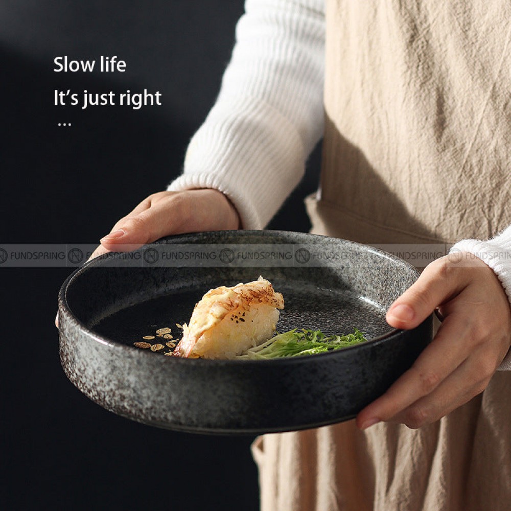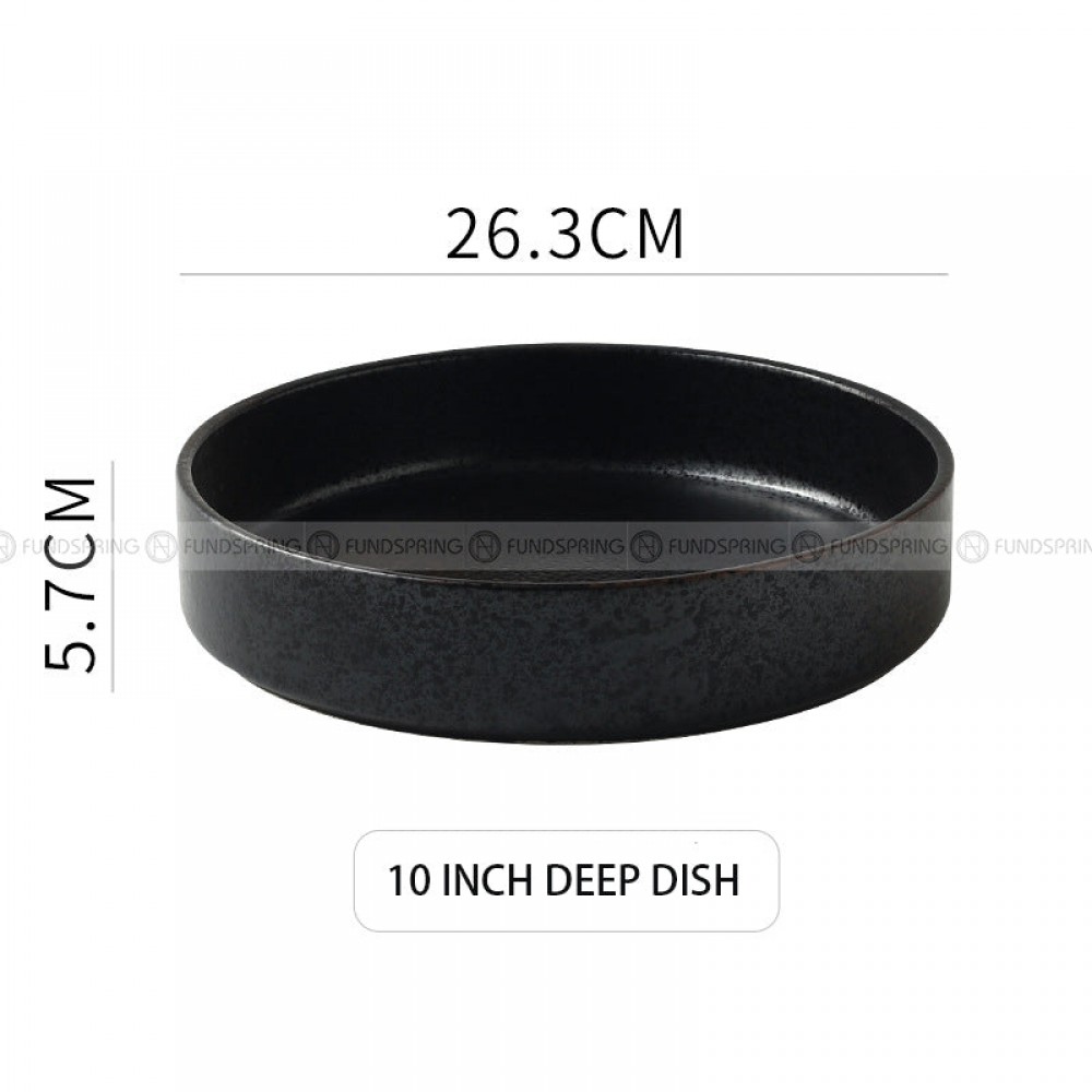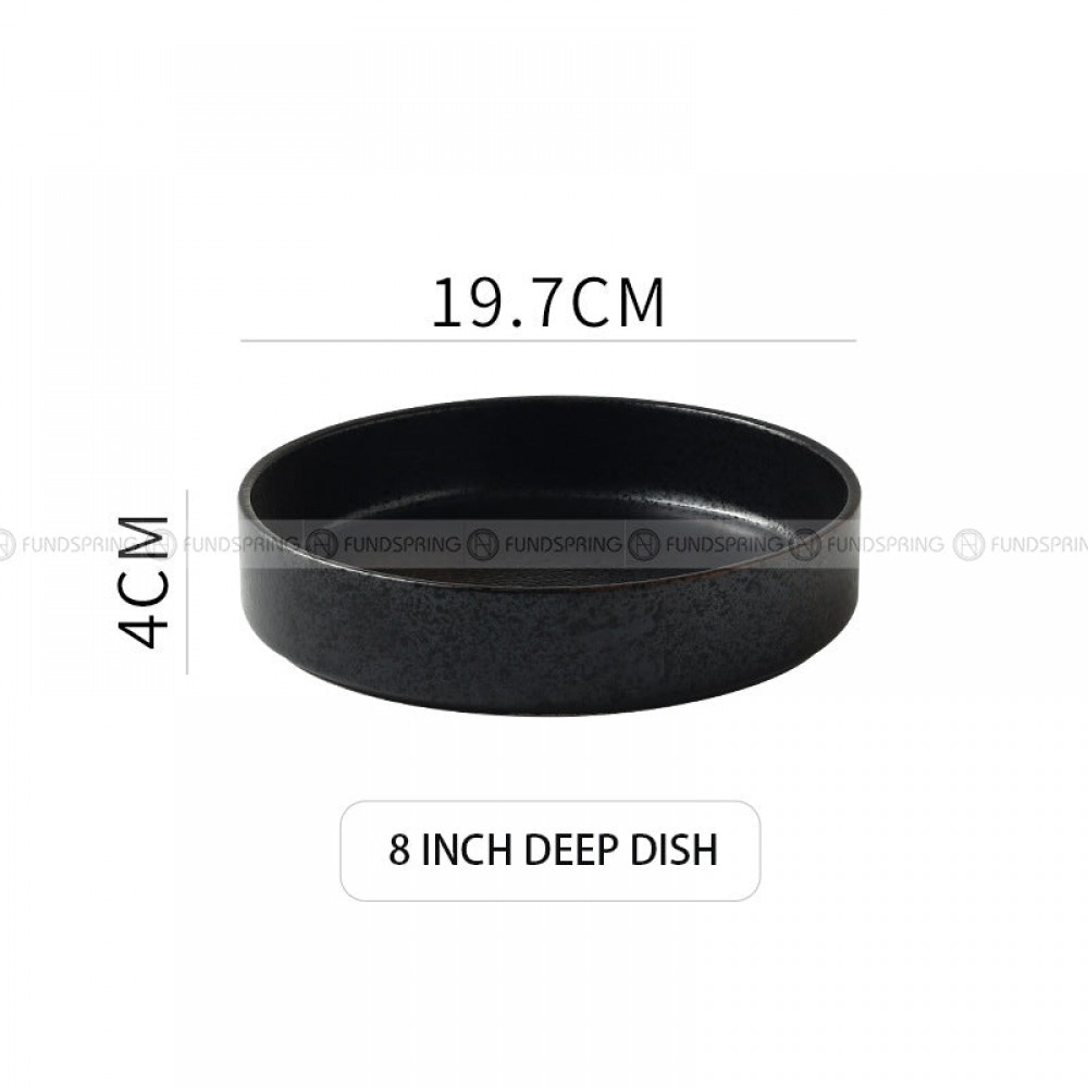 Ceramic Deep Dish Shallow Bowl Straight Bowl Flat Bottom Black Plate