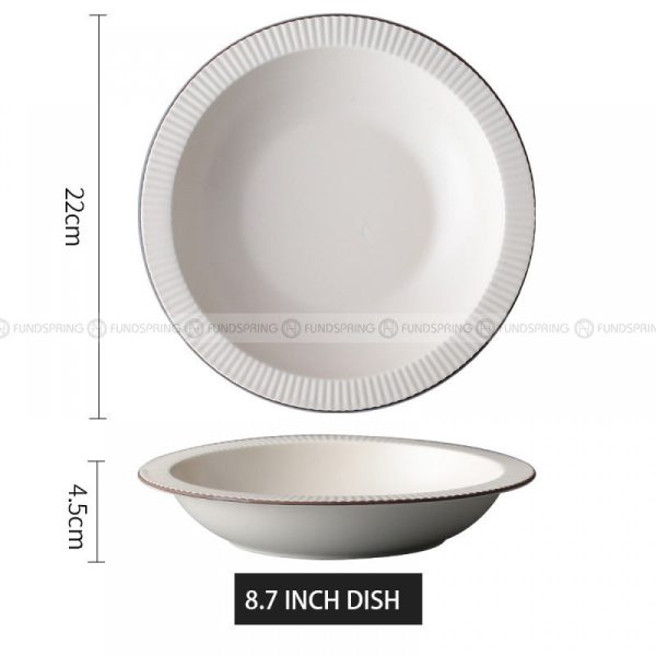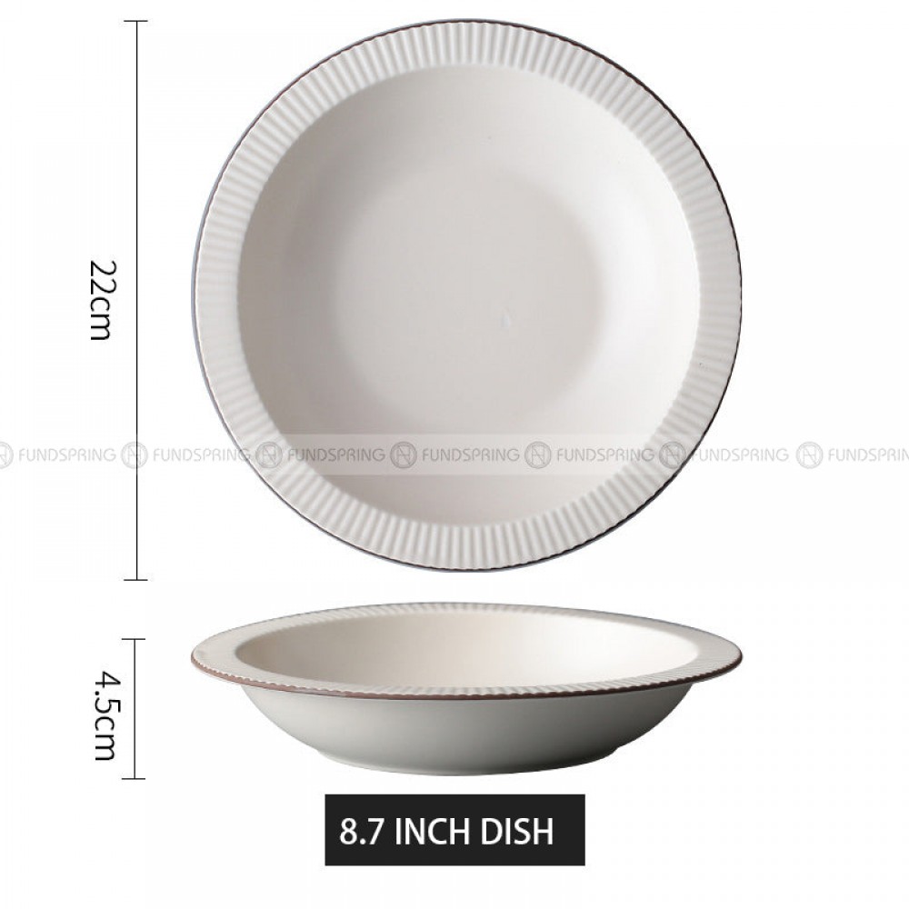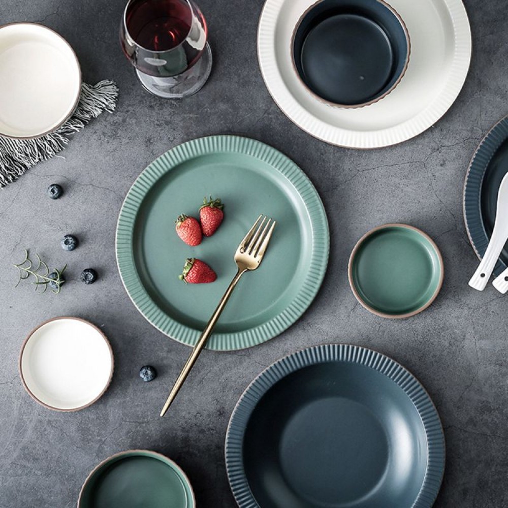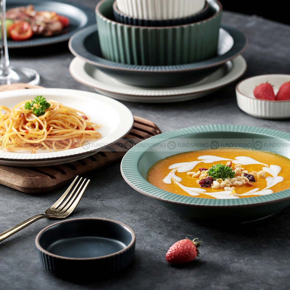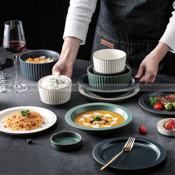 - Nordic simple tableware matte dinnerware, the three-dimensional stripe design of the bowl body, the fine and dense texture distribution color glaze process, the simple and clear porcelain is delicate and warm, smooth and easy to clean.