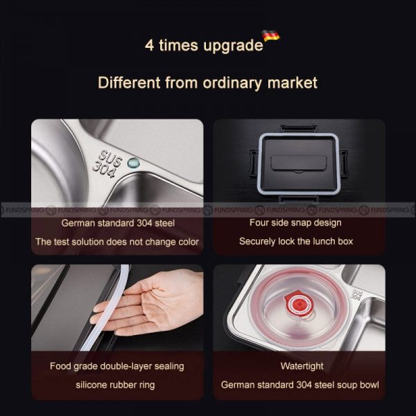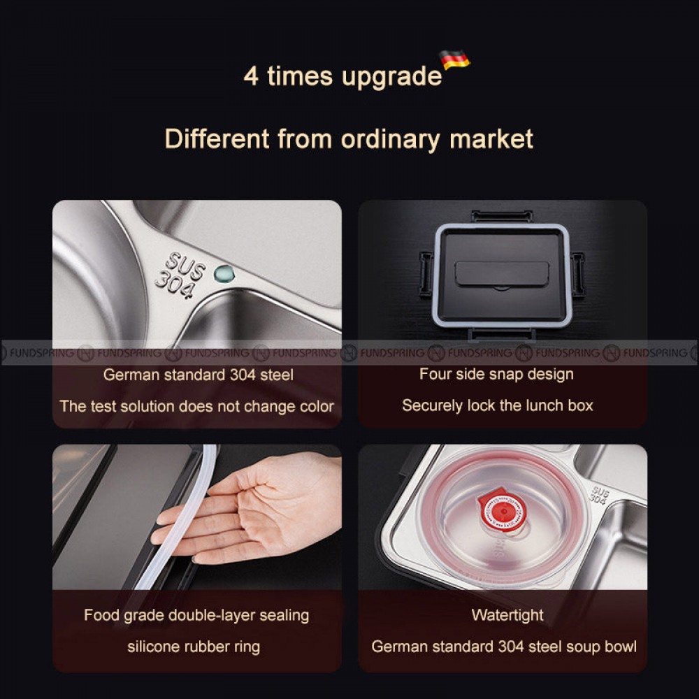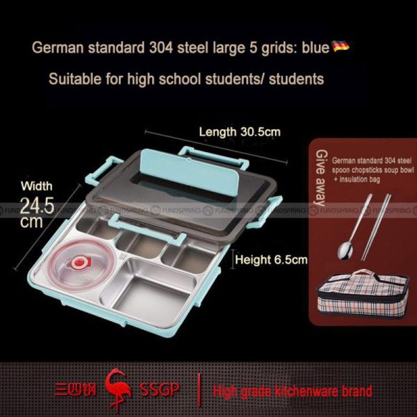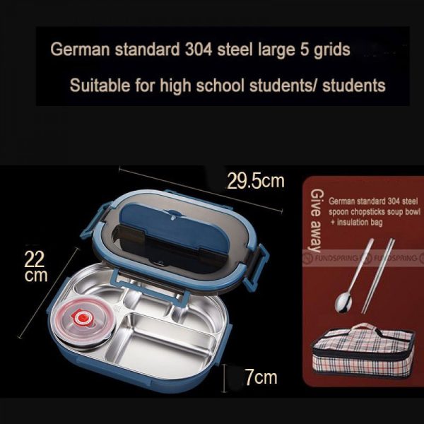 About this itemECO Friendly & Easy to Clean:?Odorless, safe, environmentally friendly, easy to clean and reusable lunch box??Leak-Proof Thermal Insulation: Sealed silicone layer and safety buckle cover, leak-proof and easy to open and close, helping children to enjoy a wonderful lunch.Keep Fresh: The bento box keeps meals fresh and tidy during transportation, prevents food from mixing, has four grids with a soup bowl, separates staple foods, vegetables, fruits, and soups, and maintains the original taste. With a lock design, easy to open and close.Advanced Use: Insulated lunch box, microwaveable, freezing, safe for dishwasher. It is very suitable for children and adults to bring food to school, the office, on short trips, on a picnic, or anywhere.