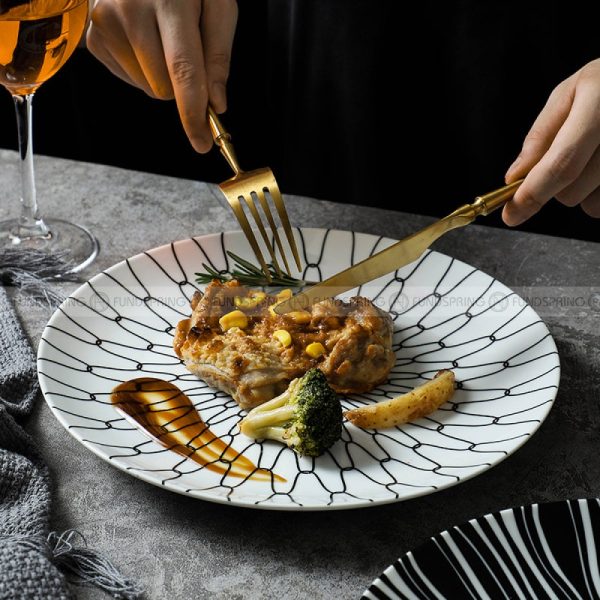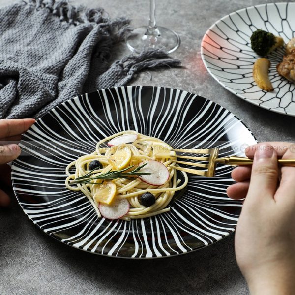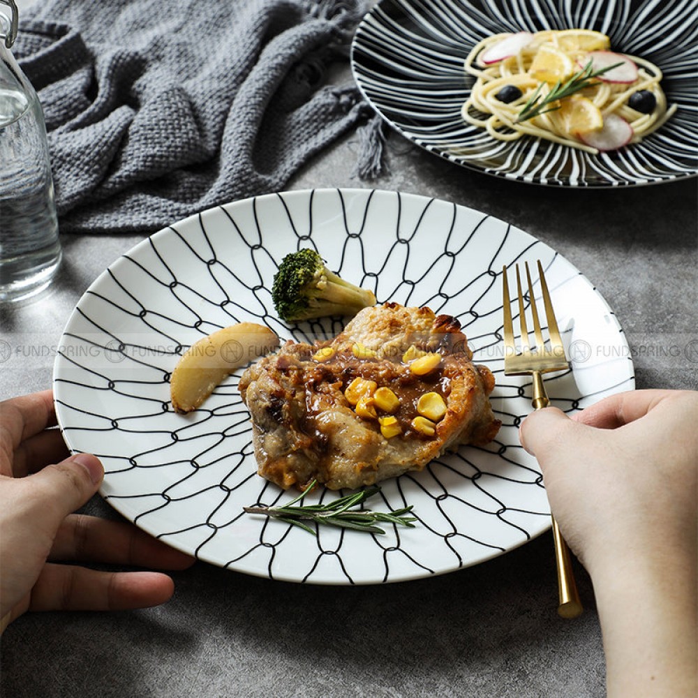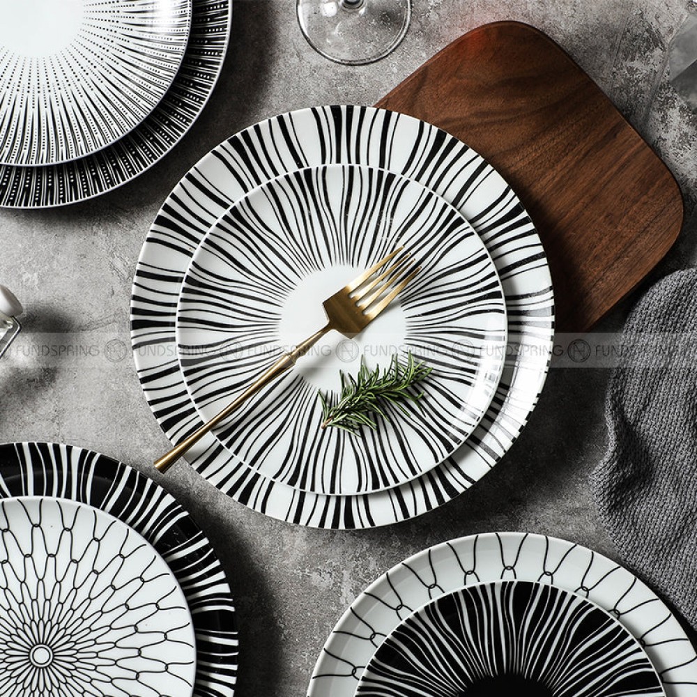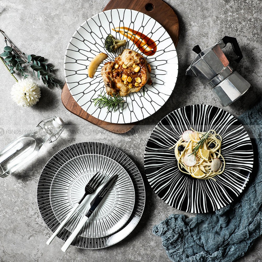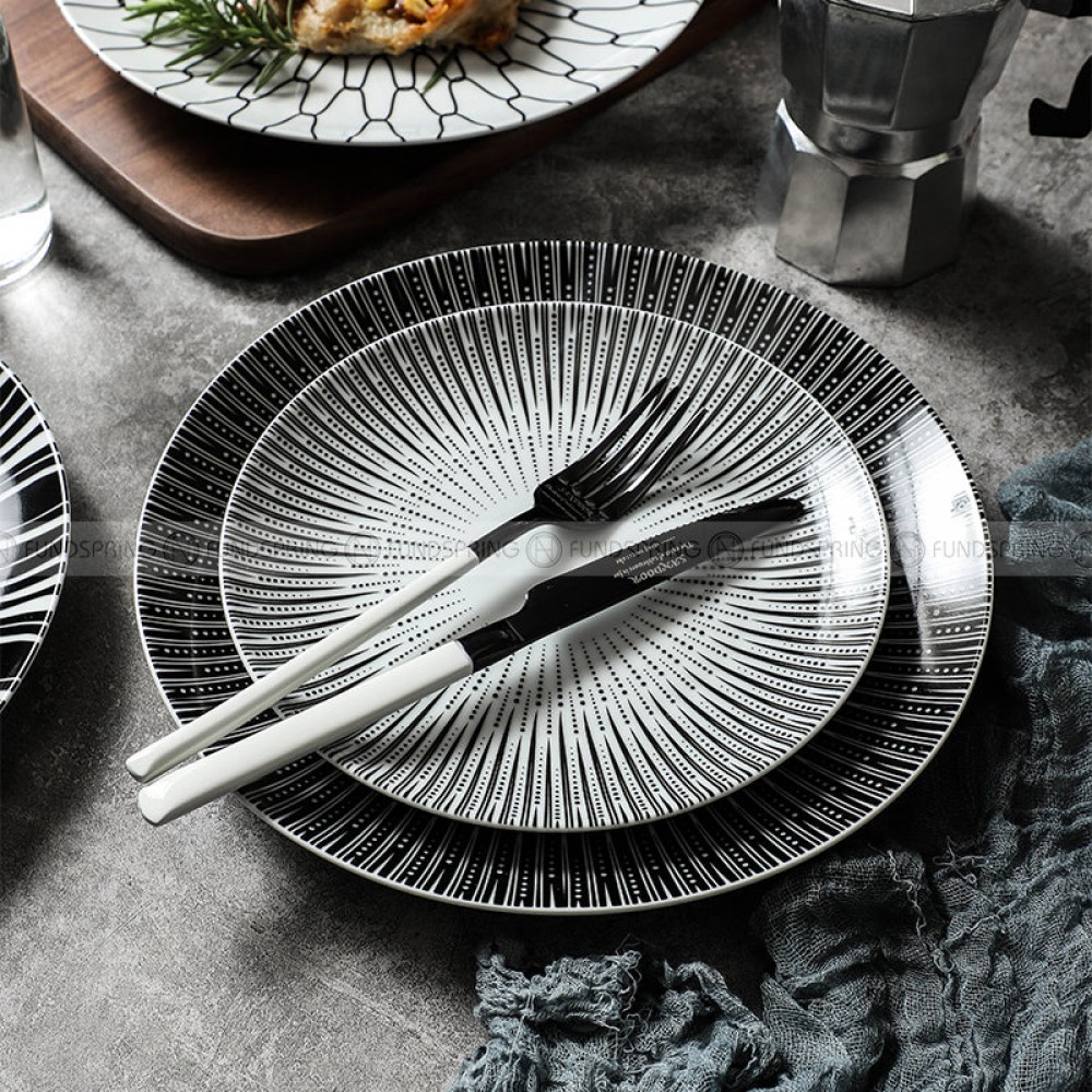 Elegant Monochrome Ceramic Dinner Plates – Set of 2 (8″ and 10″)