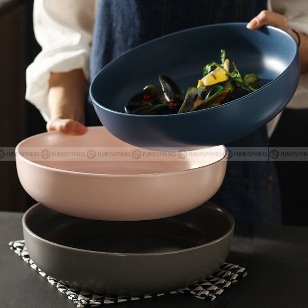 Creative Tableware Ceramic Round Bowl Big Soup Bowl Colors Deep Plate 10"