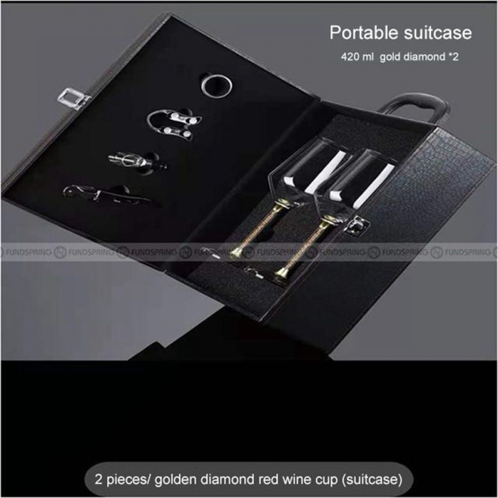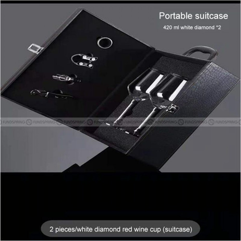Diamond Crystal Goblet Red Wine Glass Set of 2 With Portable Suitcase