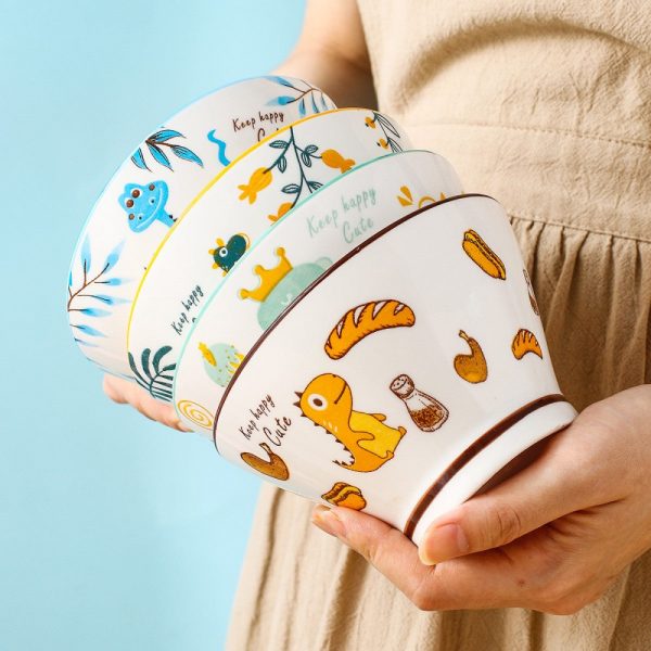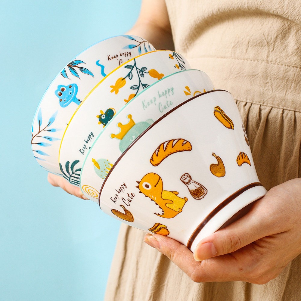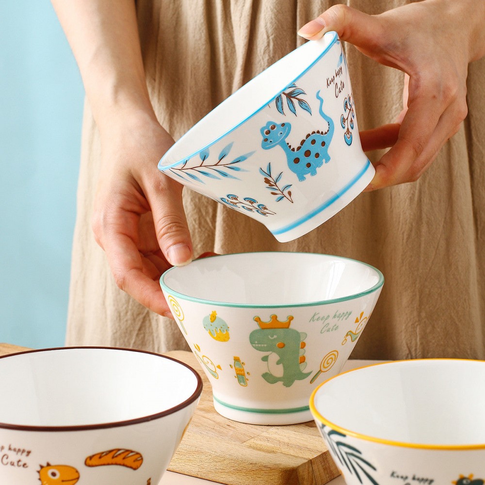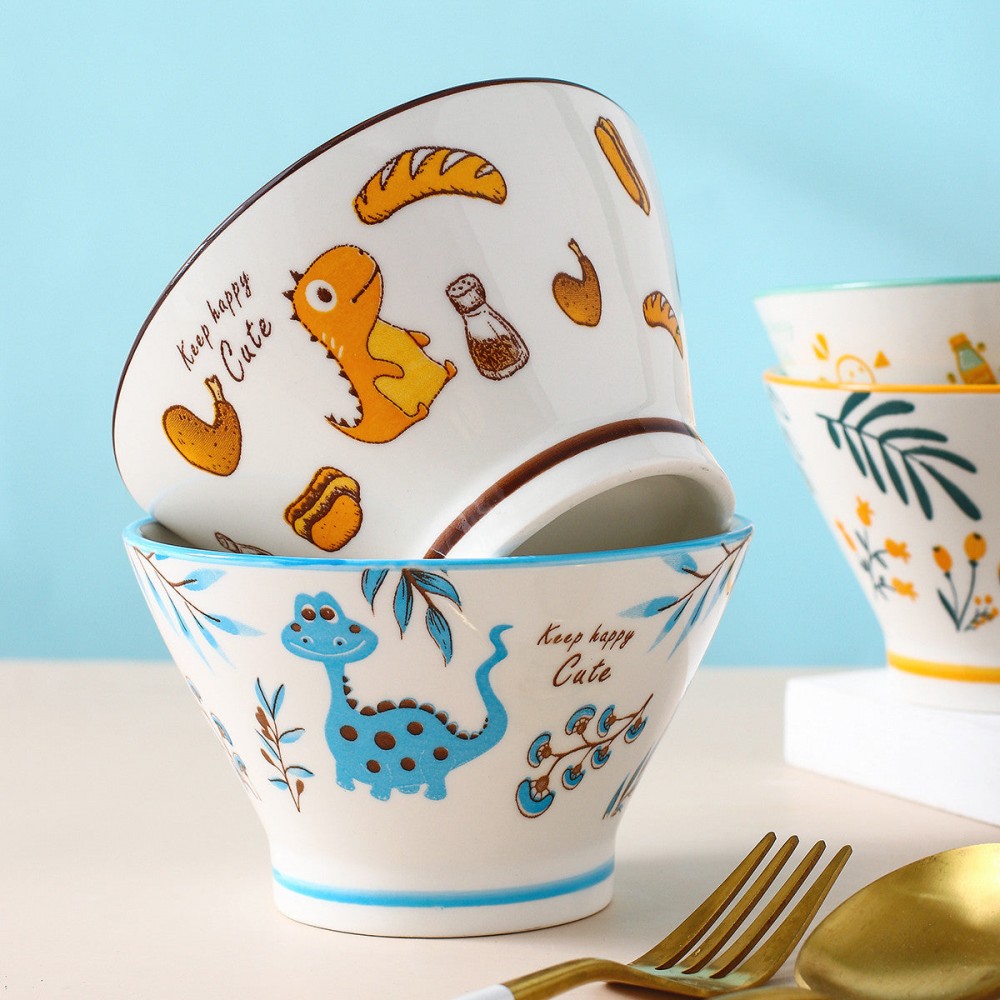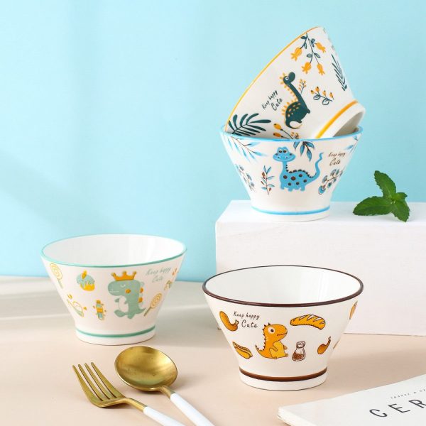 Dino Delight Ceramic Dinner Bowls – Whimsical Hat Shape, 5''
