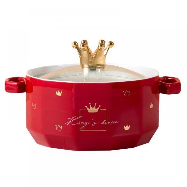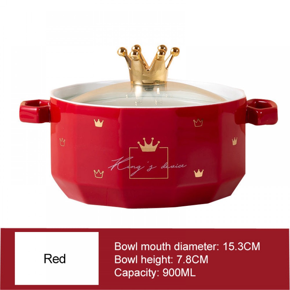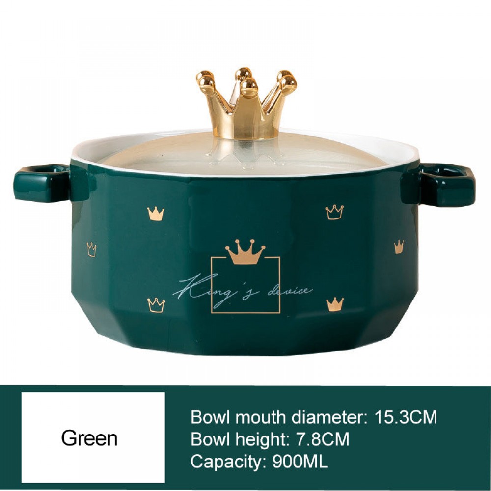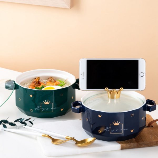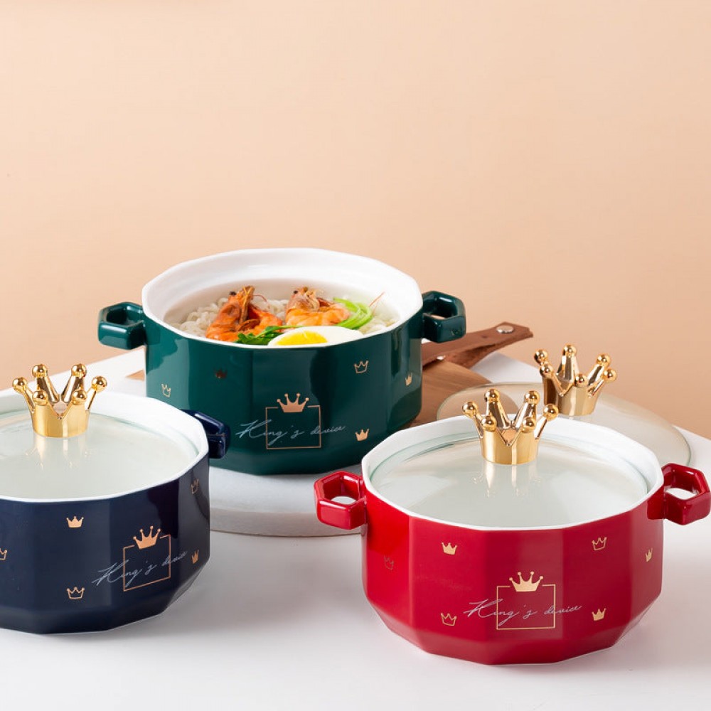 This ceramic Double-Eared Soup Bowl With Lid is designed for individual use, providing a perfect solution for quick meals and snacks. The unique double-eared design adds a touch of style while preventing spills. Crafted from durable ceramic, this bowl is built to last for years of convenient use.