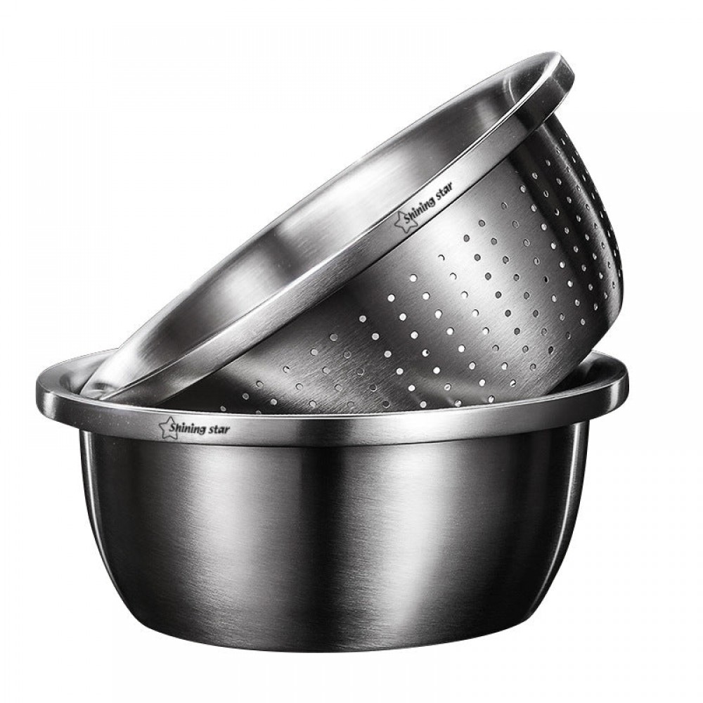- Stainless Steel Colander, Heavy Duty and dishwasher Safe, with a service life. Suitable for fruit vegetable washing and rice washing.