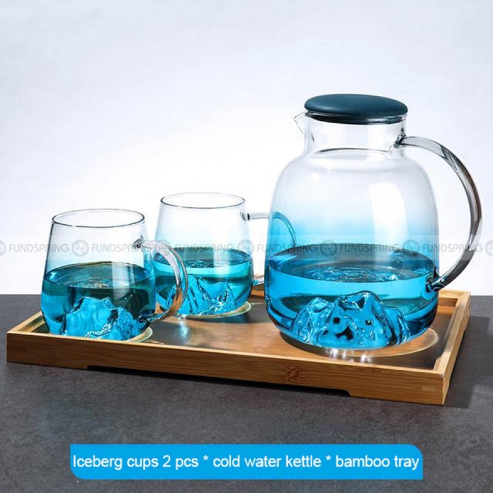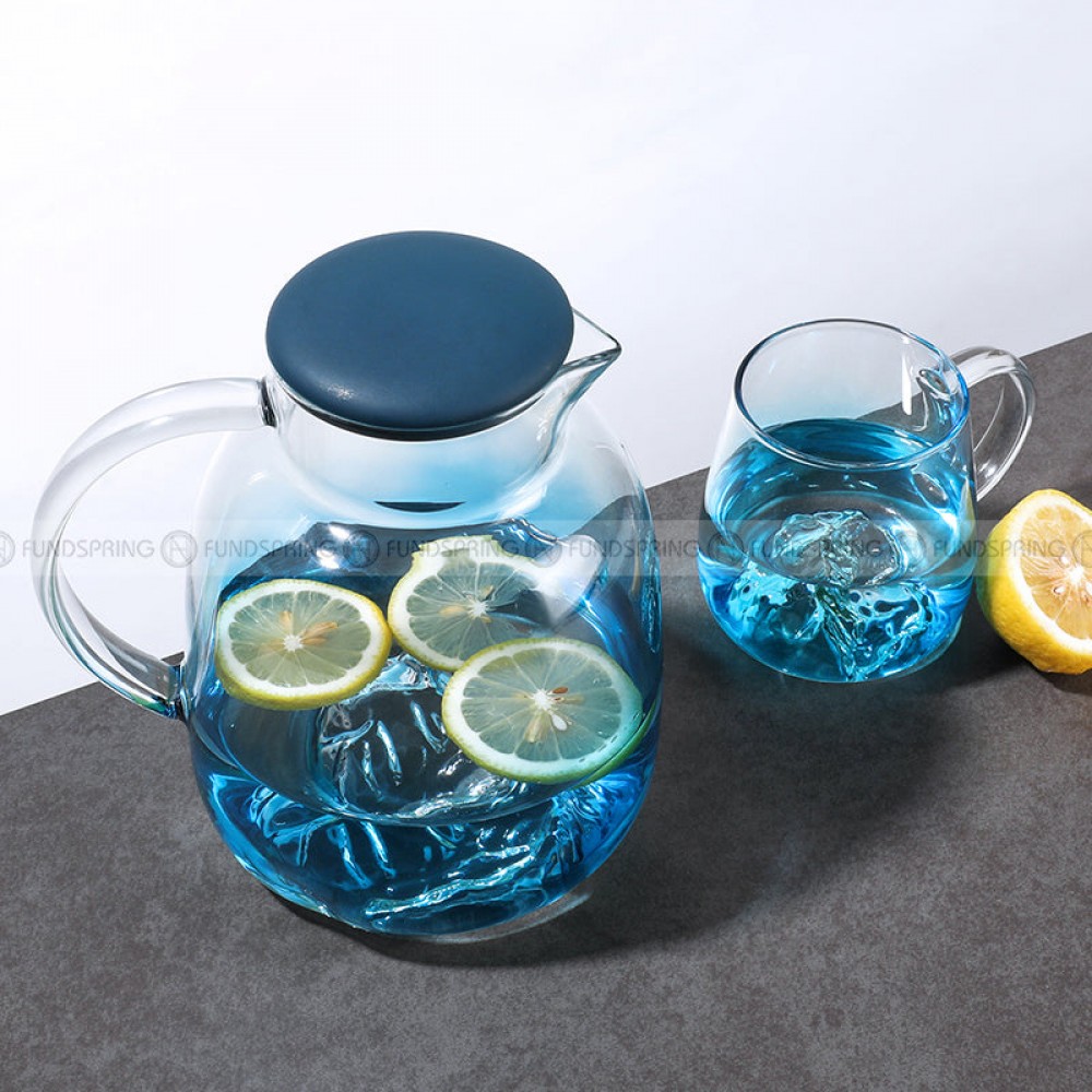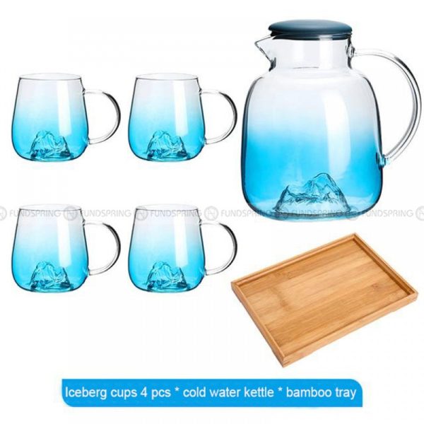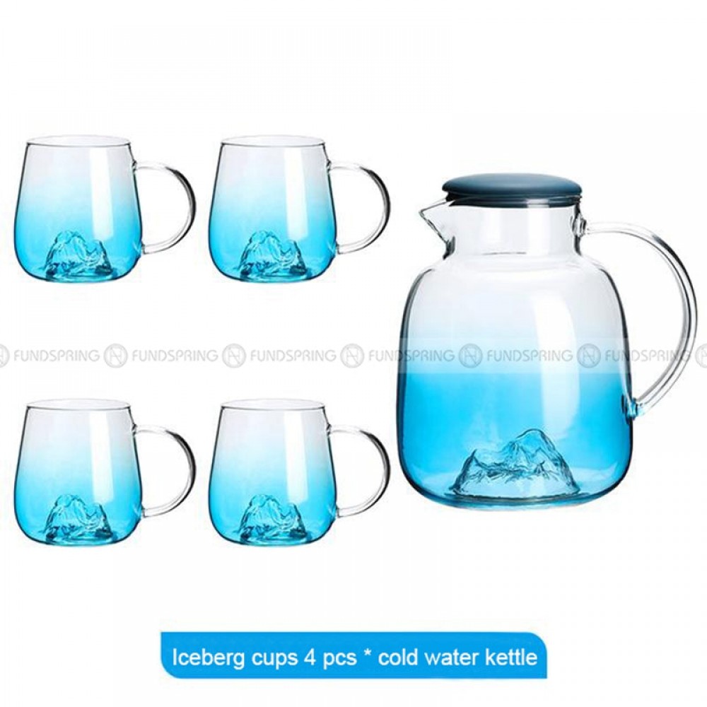 Gradient Blue Glass Kettle and Cup Set High Temperature Resistant Pitcher with Mugs