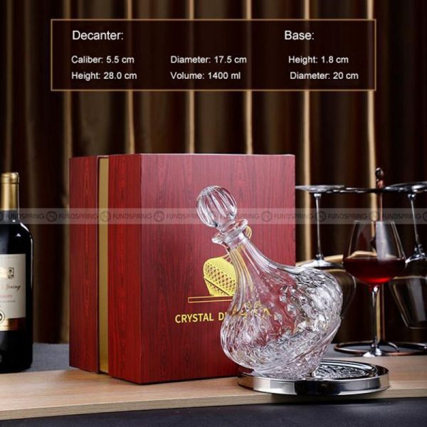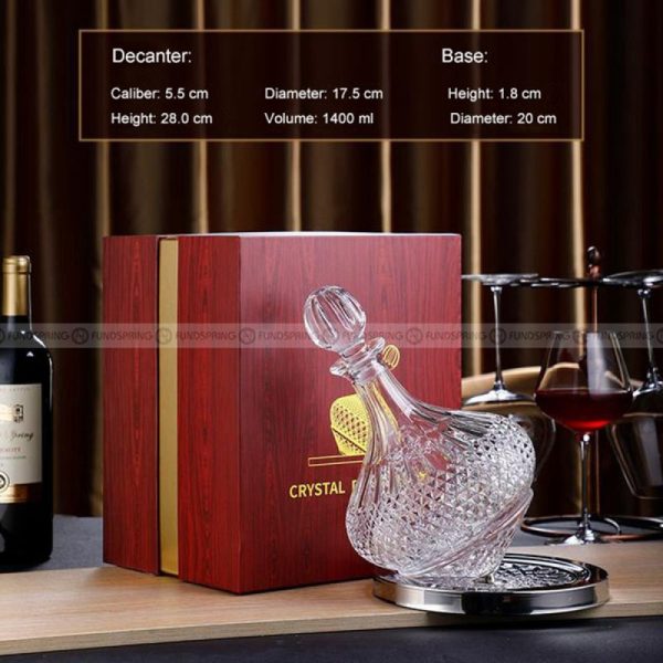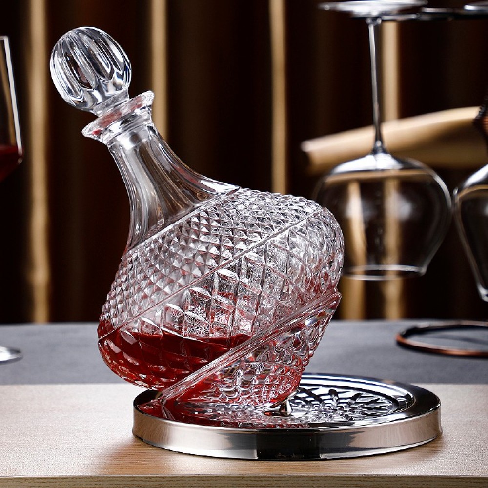 Experience a life of sophistication and refinement with our exquisite rotating wine decanter, tailored for both men and women. Featuring a unique carved base design, it effortlessly rotates, adding an extra touch of elegance to your wine-tasting ritual.