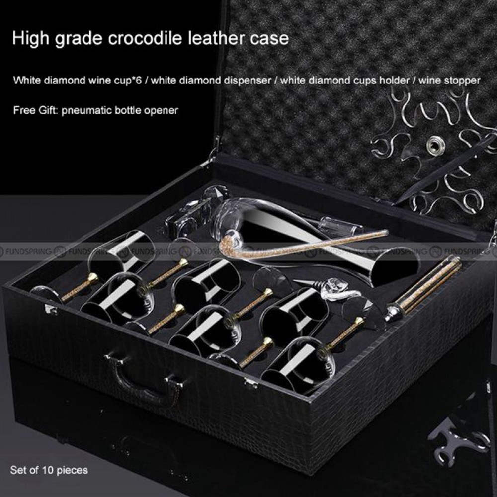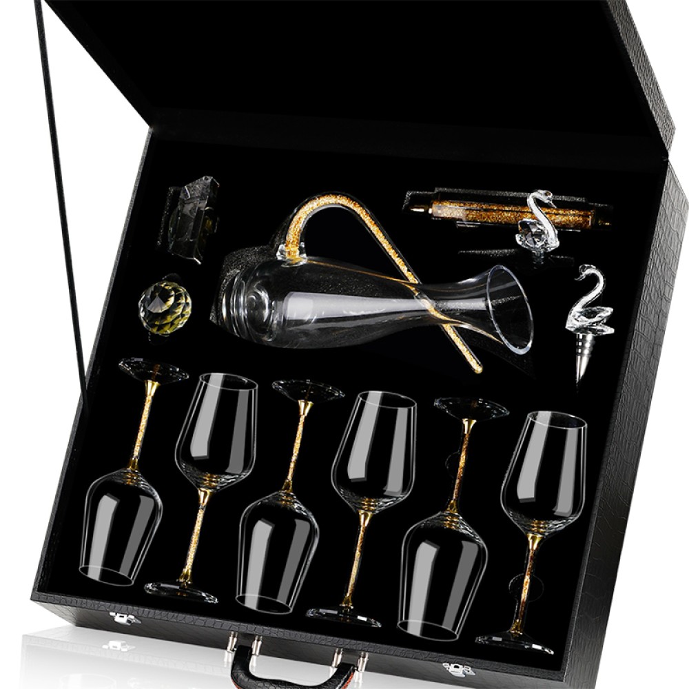 High-end 24K Gold Foil Red Wine Glass Set, Household Crystal Goblet, Large Decanter, Cup Holder, Leather Suitcase Set
