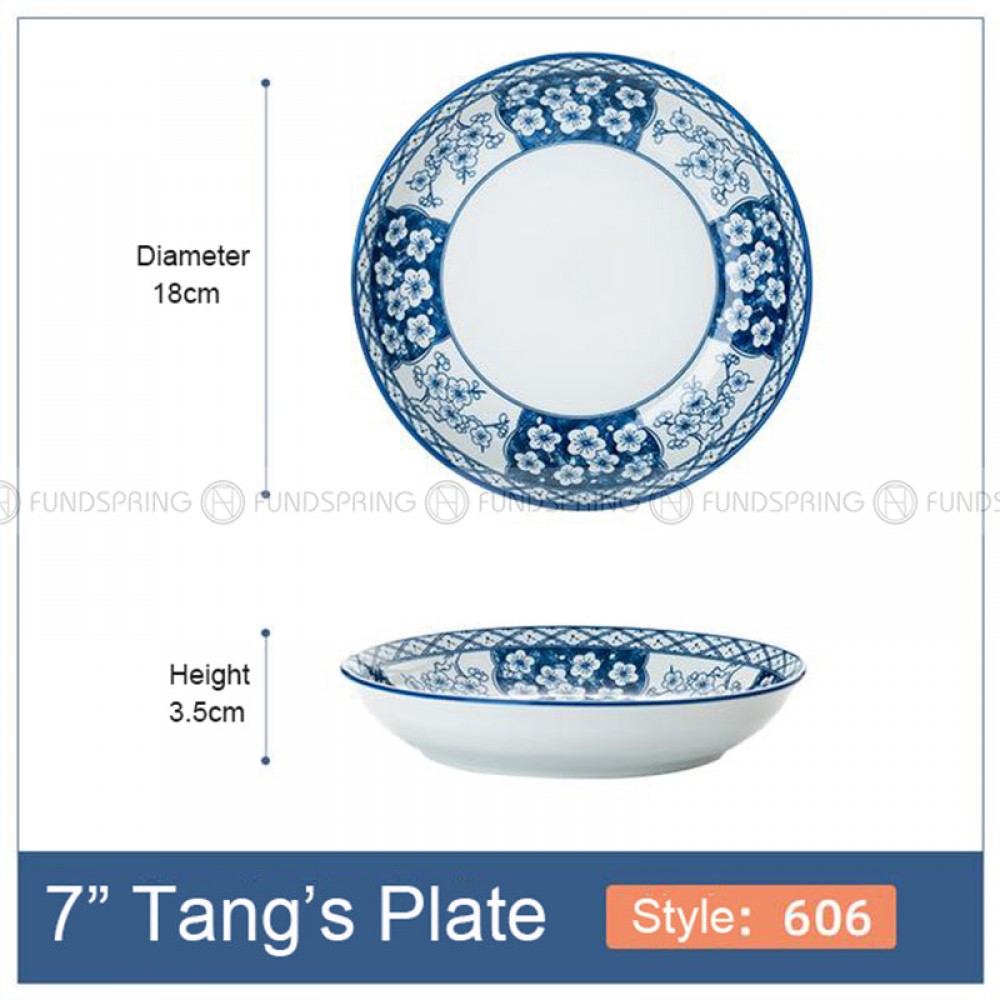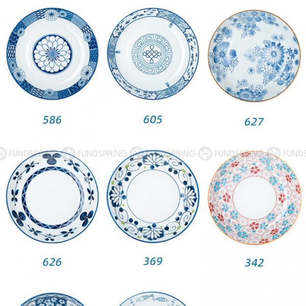 - A set of 4-pack 7-inch round ceramic plates with 18 different patterns, 18 cm diameter, and?3.5 cm height.