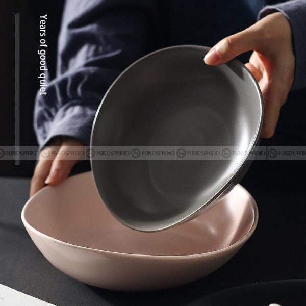 Japanese Ceramic Tableware Irregular Matte Ramen Bowl Deep Salad Plate