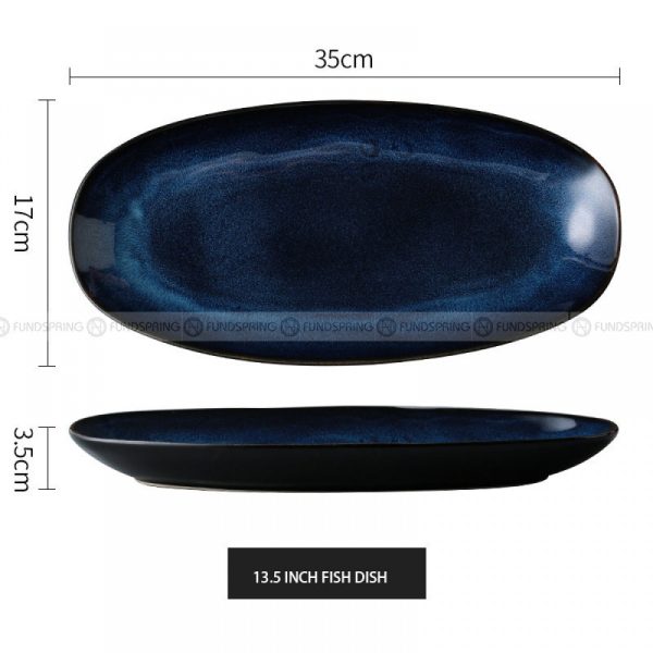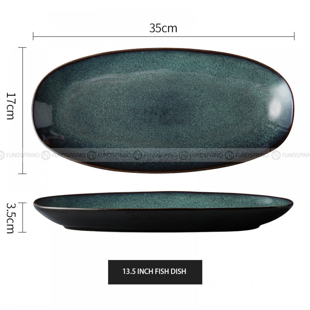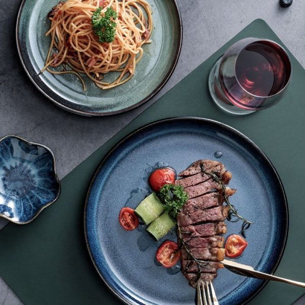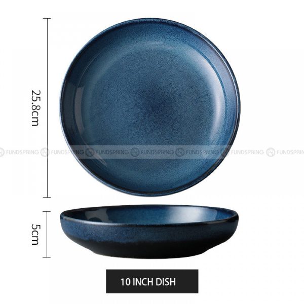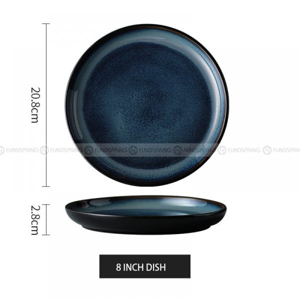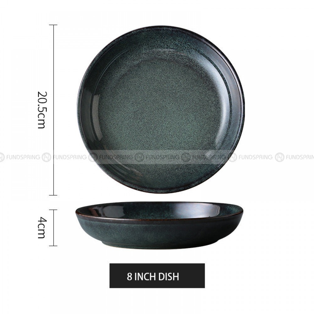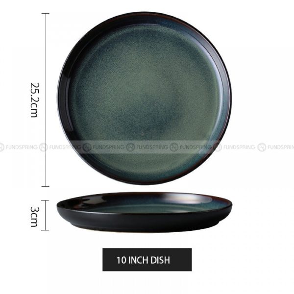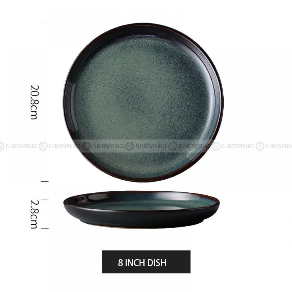 Kiln Change Ceramic Tableware Blue/Green Glaze Bowl Plate