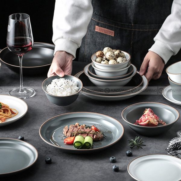 Minimalist Matte Ceramic Dinnerware Morandi Porcelain Bowls Plate