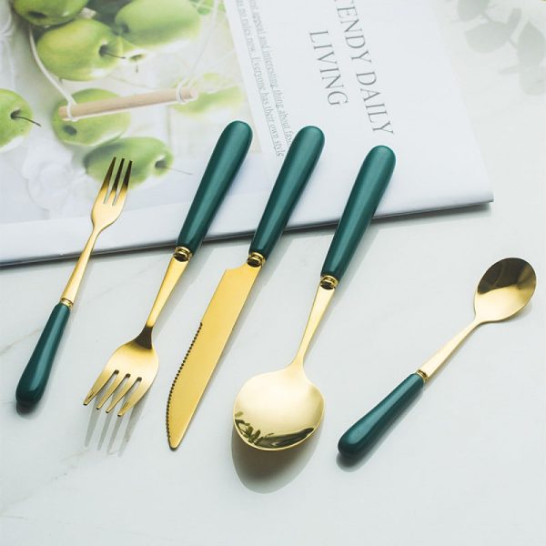 Fork and knife for steak, small dessert fork, chopsticks, come with an emerald ceramic handle, comfortable holding.?