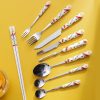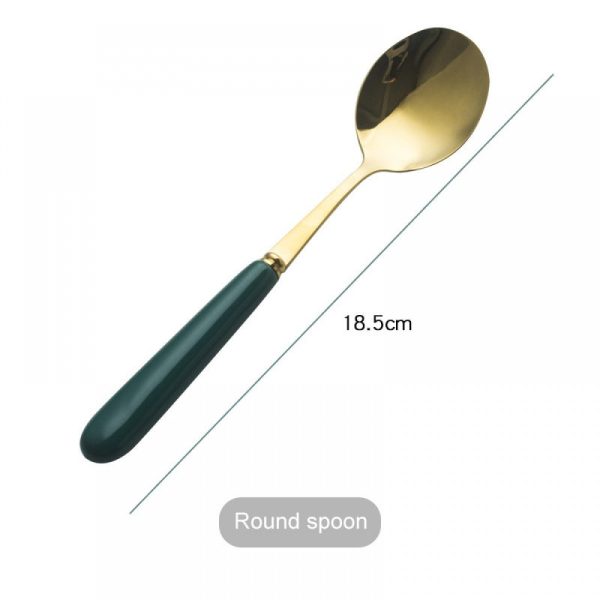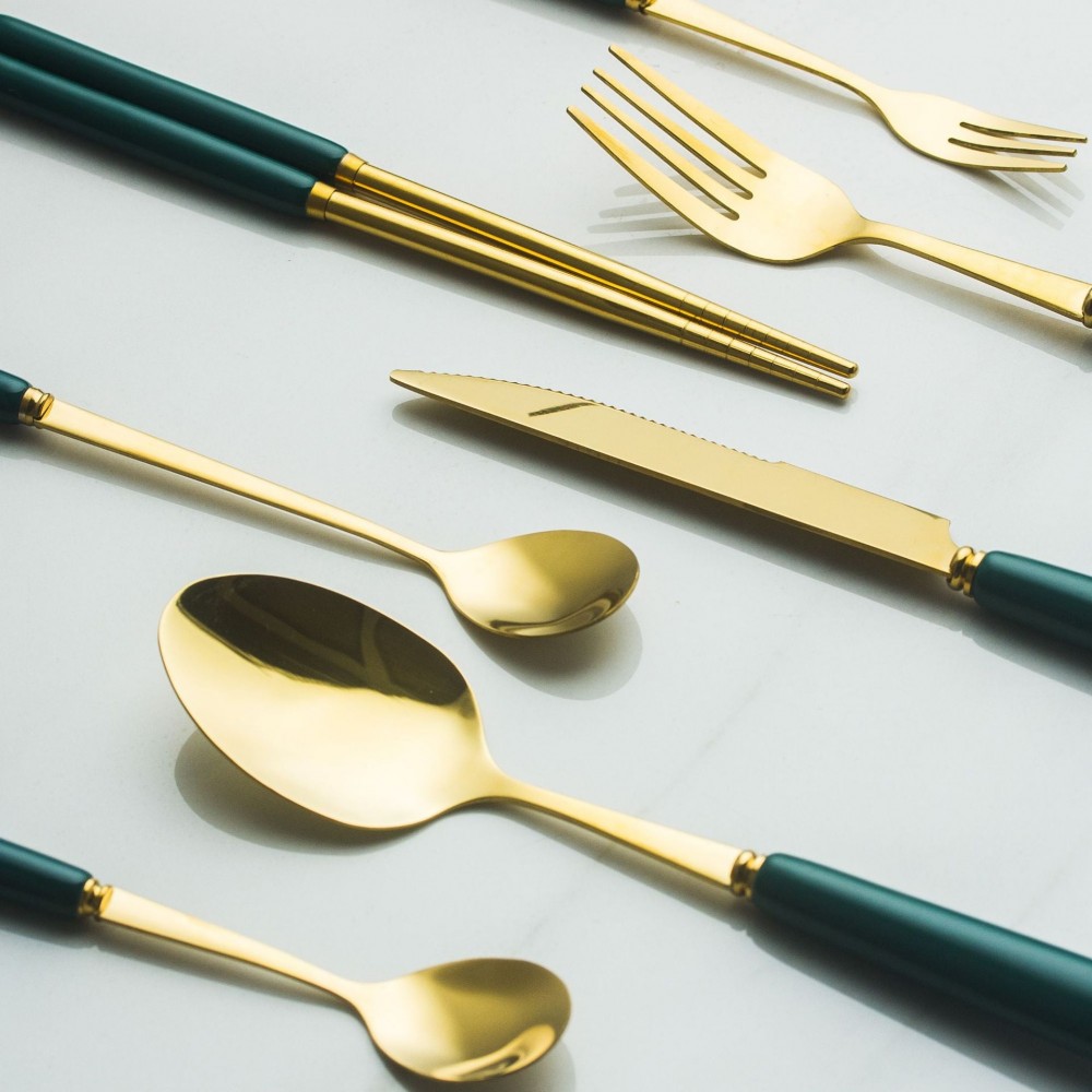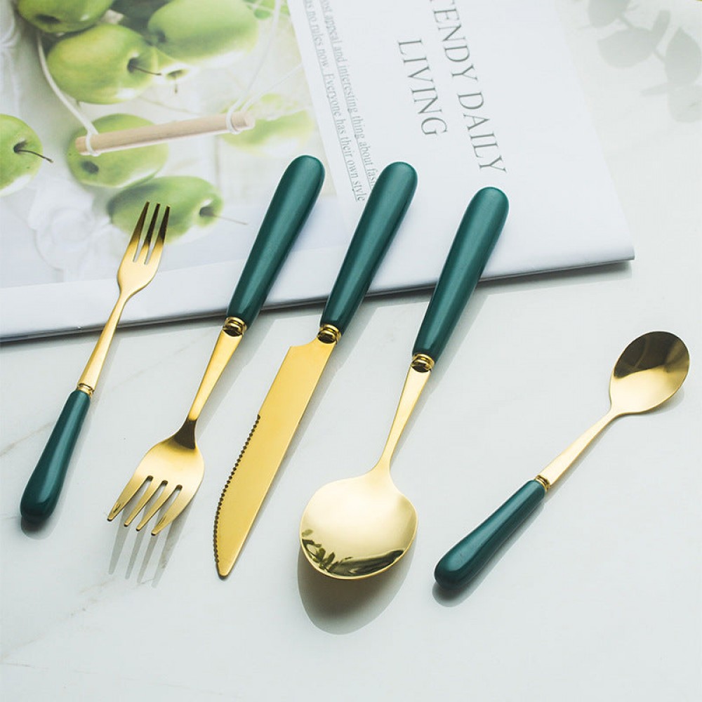 Modern Flatware Set Stainless Steel Gold Knife, Spoon, and Fork With Ceramic Handle