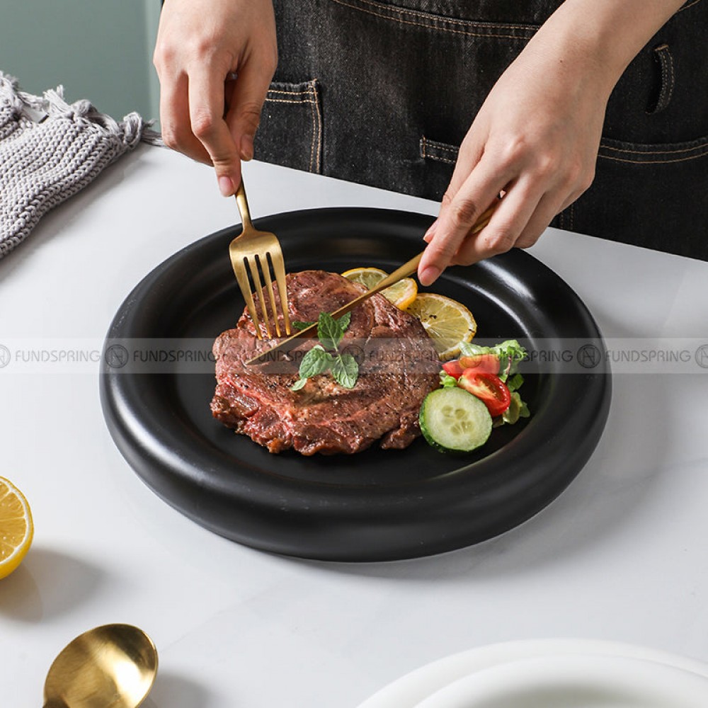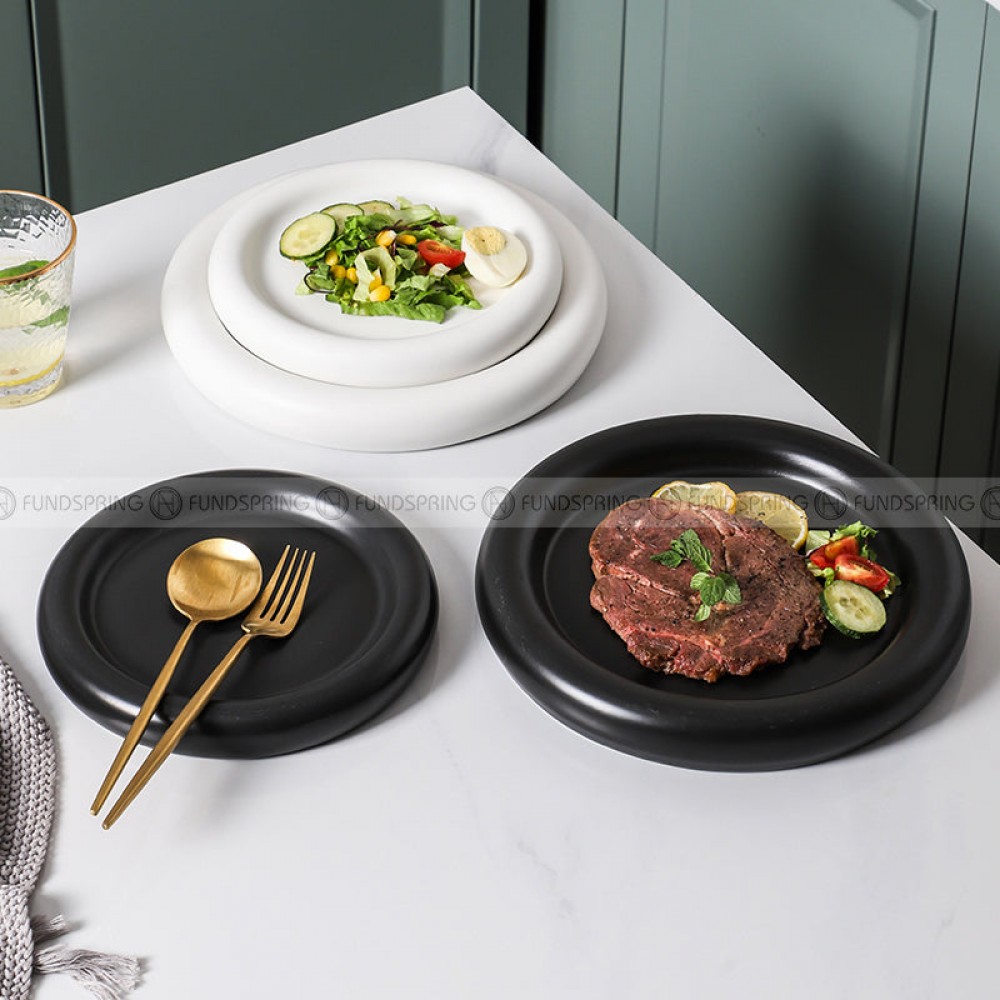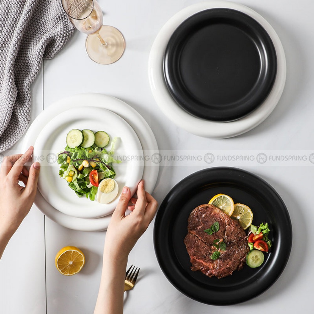 Elevate your dining experience with our Nordic Harmony Ceramic Dinner Plate Set. Crafted from high-quality ceramic, these plates showcase a timeless round shape in a sleek black-and-white color palette. With a size of 8 inches and 10 inches, they are versatile for various occasions, from everyday meals to special dinners.