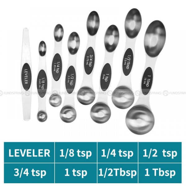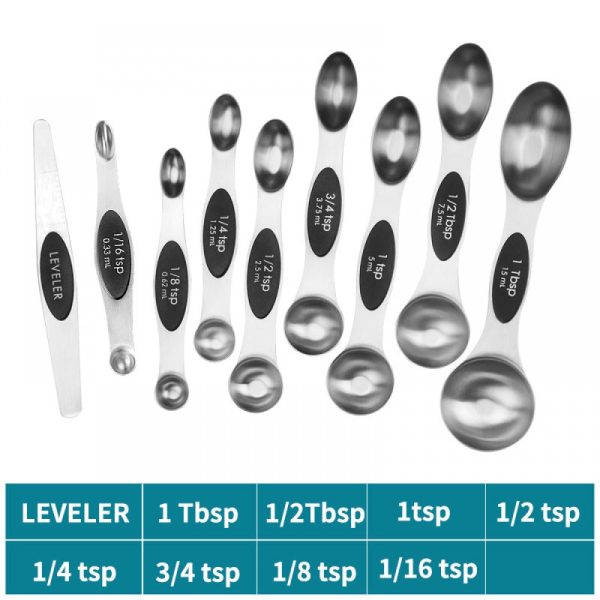 Crafted from food-grade stainless steel, these measuring spoons boast a smooth surface and edges, ensuring safety and durability. The magnetic design allows for convenient storage, as the spoons can be nested or stacked together. The strong magnetic core ensures secure placement on stainless steel surfaces or metal pastry boards, keeping your kitchen organized.