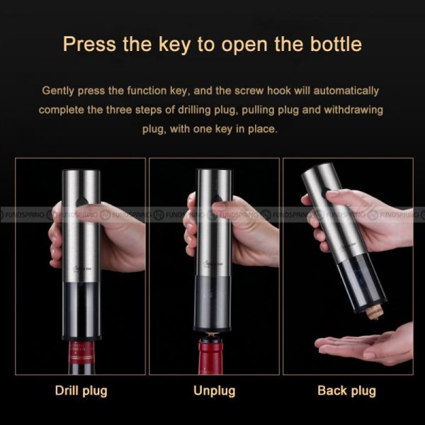 Easy& Rapid Opening – The electric wine opener helps you open wine with ease and never struggle with corks again. Simply press the ??Down?? and ??Up?? buttons to remove a cork in 5 seconds. Rechargeable Cordless Electric Wine Bottle Opener – Easily remove corks in seconds. Compatible with most wine bottle sizes.Small Footprint Saves Space – Our all-in-one electric automatic wine opener kit is small enough to store discreetly away when not in use. Keep the charging base next to your wine fridge, storage rack, credenza, etc.Makes an Amazing Present – An elegant color makes our electric corkscrew bottle openers an attractive present, or use it at home when catering, at banquets, in restaurants or behind the bar.