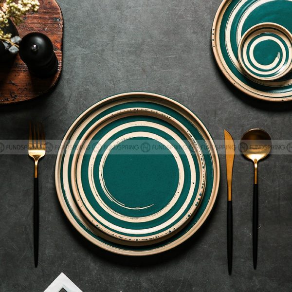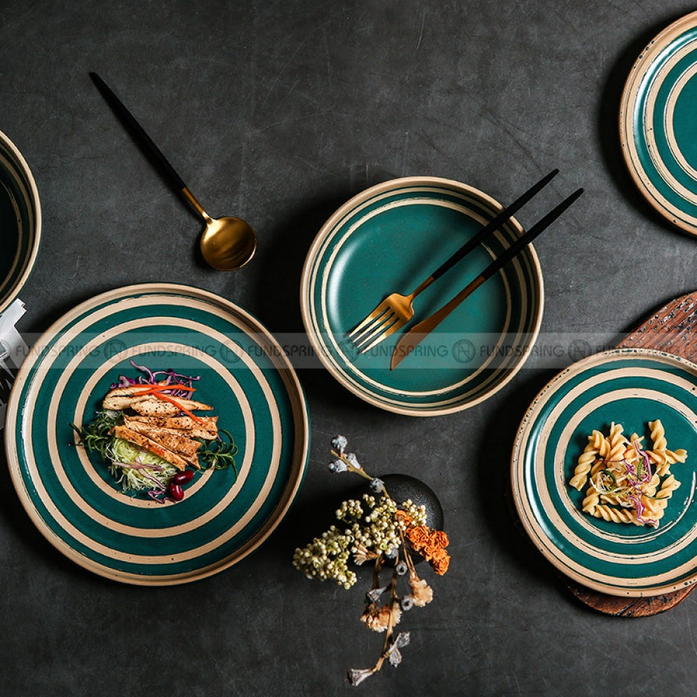 Retro Western Style Ceramic Dinner Plate Set – Creative Dining Table Essentials (8" and 10")