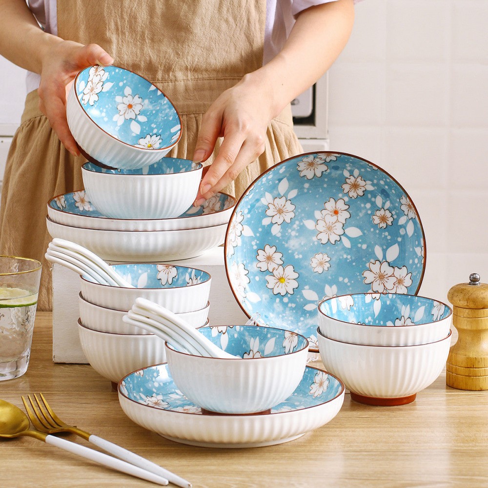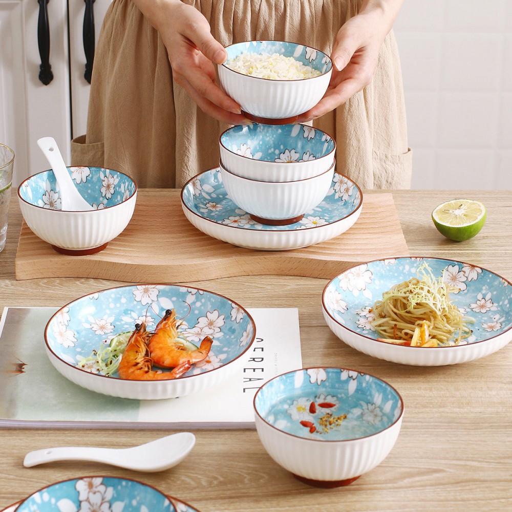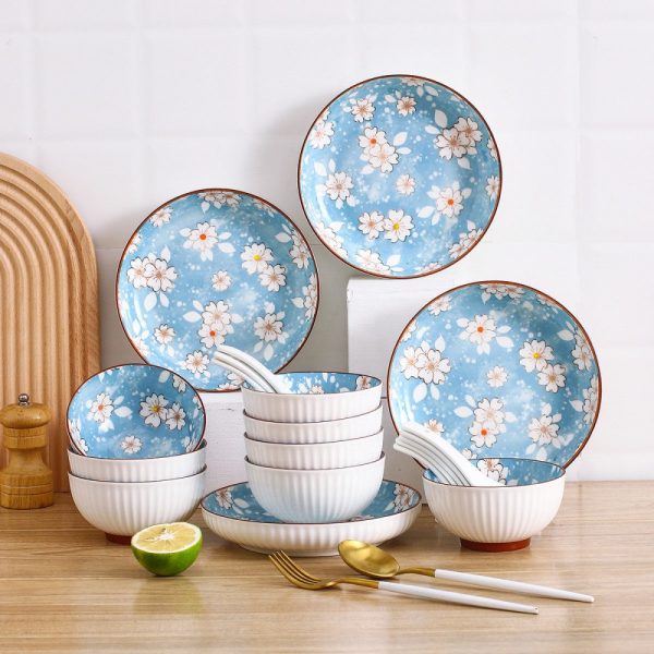 Snow Sakura Veritcal Pattern Tableware Ceramic Dinnerware Set