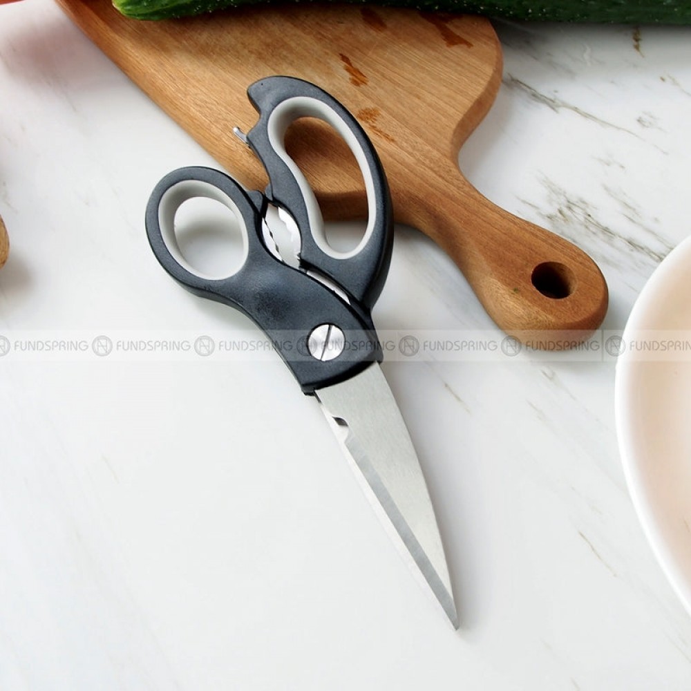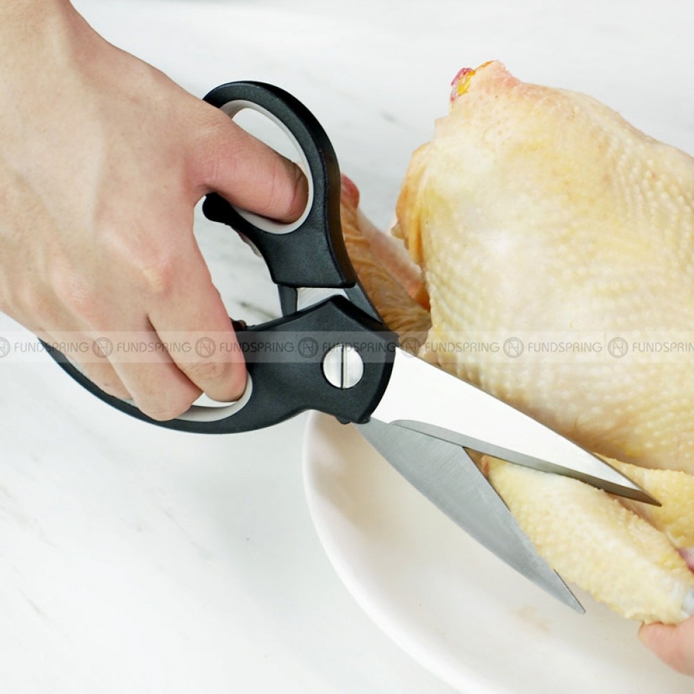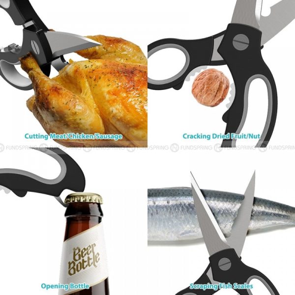 [SUPER STRONG HEAVY DUTY HAND SHARES] Unlike ordinary straight-edged blade scissors, it has a special micro-serrated blade edge that cuts any food without slipping. You can cut well not only for hard food but also for soft and slippery ingredients. Ideal tool for cutting meat, bone, chicken wing, turkey, poultry, fish, shrimp, lobster, crab, seaweed, vegetable, potato, etc.[MULTIPURPOSE KITCHEN SCISSORS] The handle is equipped with a can opener, bottle opener, lid opener, nuts cracker, meat tenderizer. All functions you need in the kitchen are integrated into a pair of scissors by gathering the voices of many cooks. These heavy-duty kitchen scissors can make cooking work more efficient and fun.[ QUALITY] The blades are made of only high-grade anti-rust stainless steel. These cooking shears are the choice of professional chefs as well as home cooks. They also make great gift ideas.
