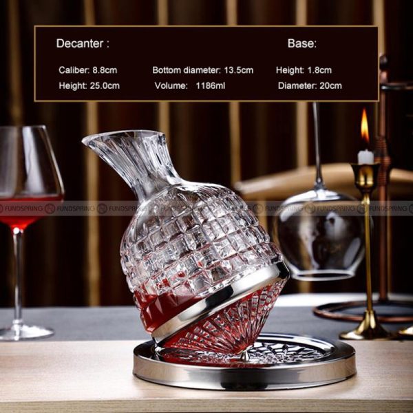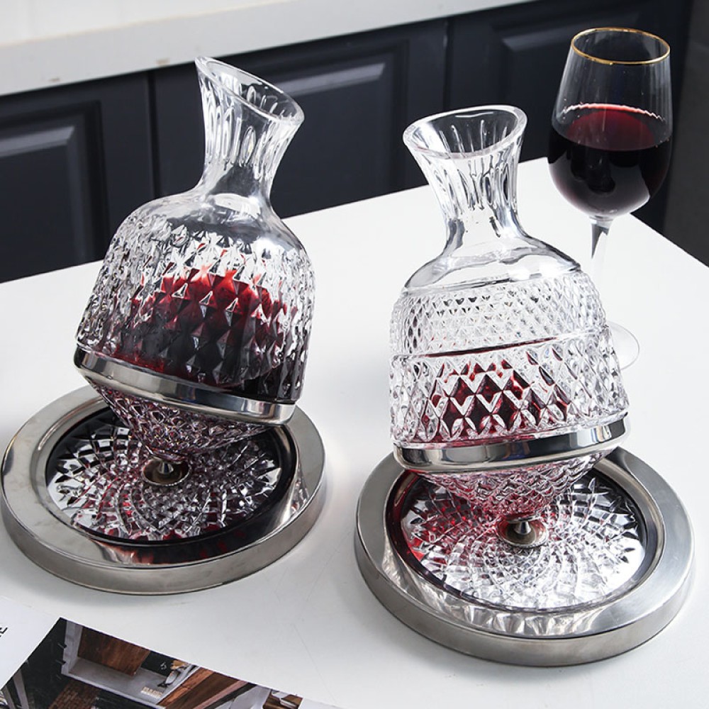 Crafted from hand-made transparent lead-free crystal glass, this decanter rotates around the center of the tray 50% faster than ordinary decanters, aerating your wine in just 10 minutes. The lead-free glass material prioritizes your health and well-being.