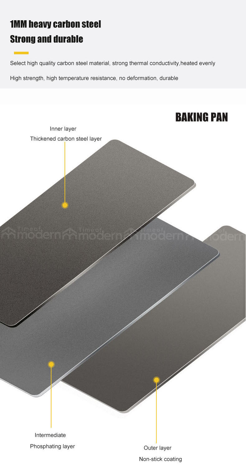 【High-Quality Heavy Duty Carbon Steel】The bread mold tray is made of carbon steel, which has excellent thermal conductivity, high strength, and good hardness. It can shorten the time of food baking and can be evenly baked during baking cakes, loaves of bread, etc. without the trouble of a certain part being burned or under-cooked.