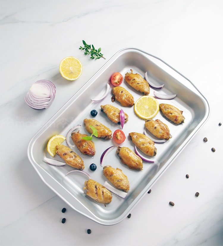 【Product Design】The roasting pan is 13.6x9.6x2.2 inches/34.5*24.5*5.5 cm. This is enough for a typical roast, ribs, chicken, salmon, and vegetables. T..