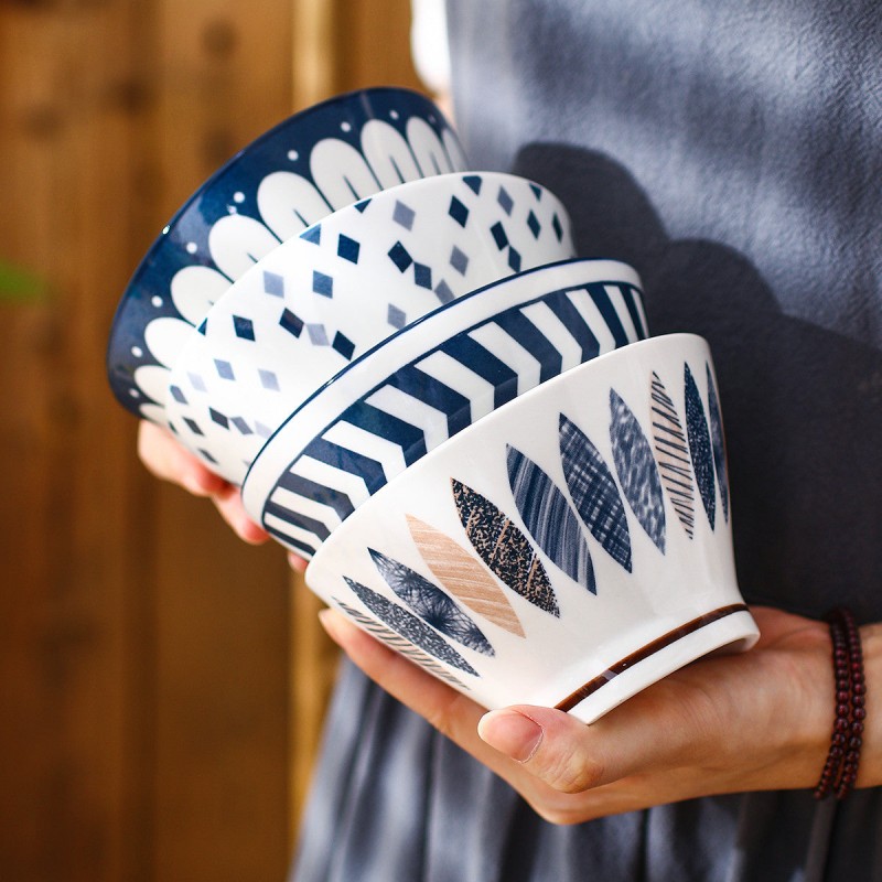 Blue and White 5'' Japanese Ceramic Bowls - Healthy, Stylish, and Versatile"