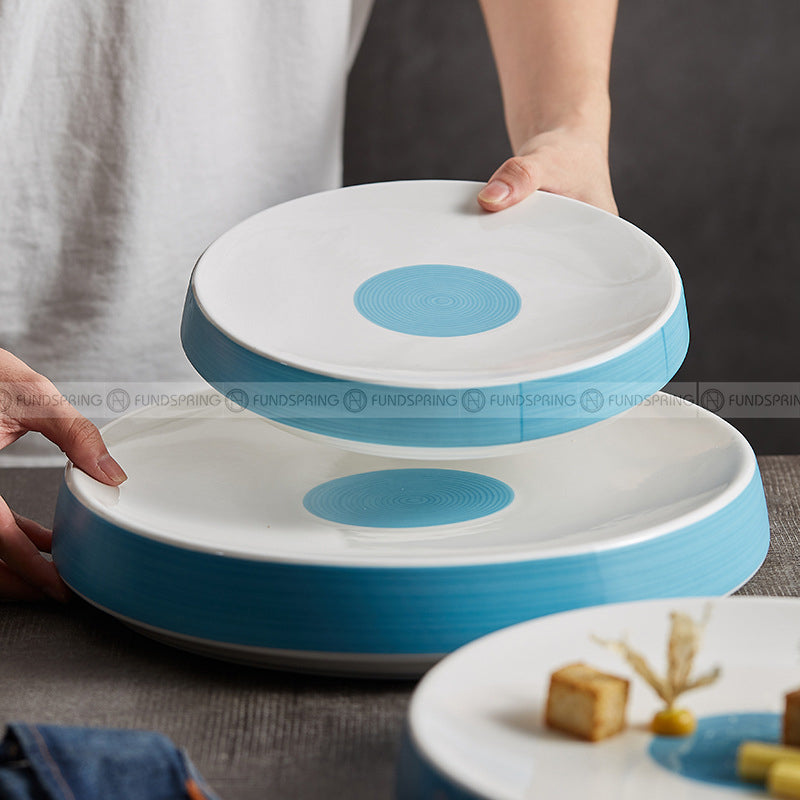 Ceremony Tableware Mood Hollow Platter Underglazed White-blue Thick Base Plate