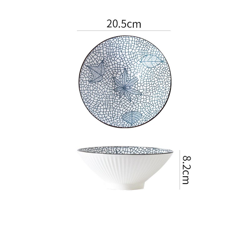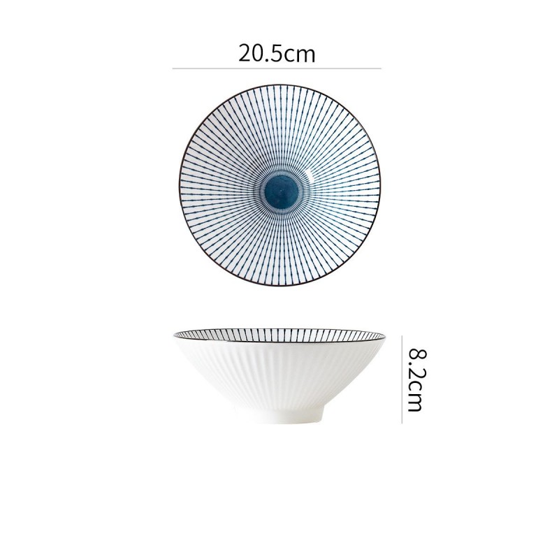 Adorned with an elegant blue and white pattern, this bowl is a masterpiece of repeating blue marks on a pristine white canvas. Its Japanese-inspired design adds a touch of sophistication to your dining experience, offering versatility for mixing and matching with other dinnerware and serving pieces.
