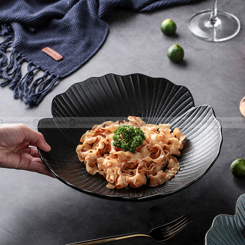Lotus Leaf Ceramic Tableware Lace Bowl 10 Inches Flower Bowl