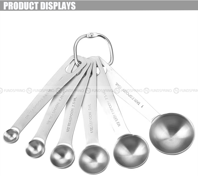 Baking Scale Measure Spoon Stainless Steel Round Measuring Spoon 6 Pcs