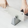 [SAFE & COMPACT]: Designed with a non-slip silicone base at the bottom and ergonomic handle, it is not easy to slide for good grip when sharpening, safe, and labor-saving. The compact design allows you to conveniently carry and store it which won't take up too much space in your kitchen.