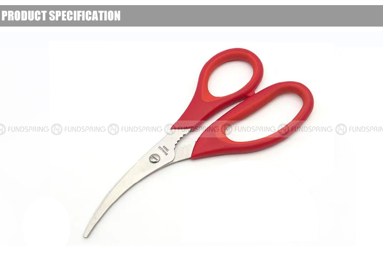 • Packaging: Seafood shears with a length of approximately 6.9 inches and a width of approximately 3.2 inches, featuring a vibrant red color.