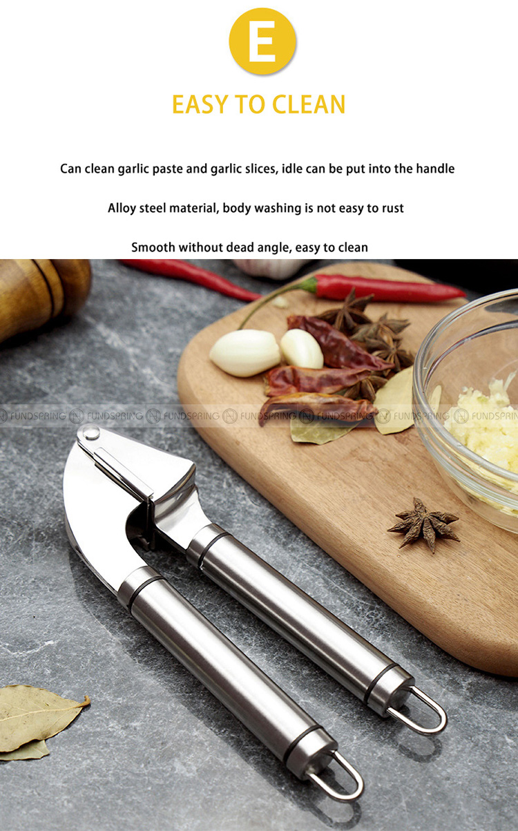 Stainless Steel Garlic Press Garlic Squeezer with Mashed Garlic