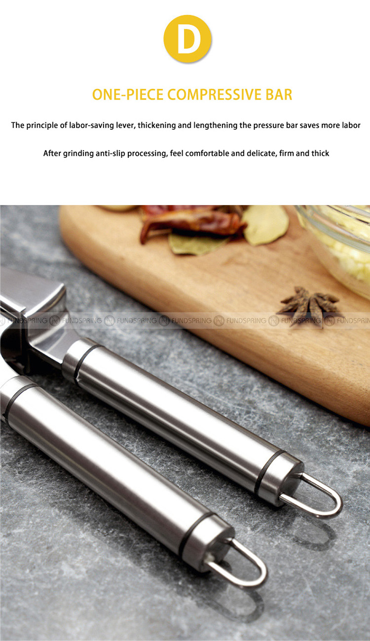 STAINLESS STEEL GARLIC PRESS: Upgrade your kitchen tools with a rust-resistant garlic smasher press made from 304 stainless steel and an included garl..