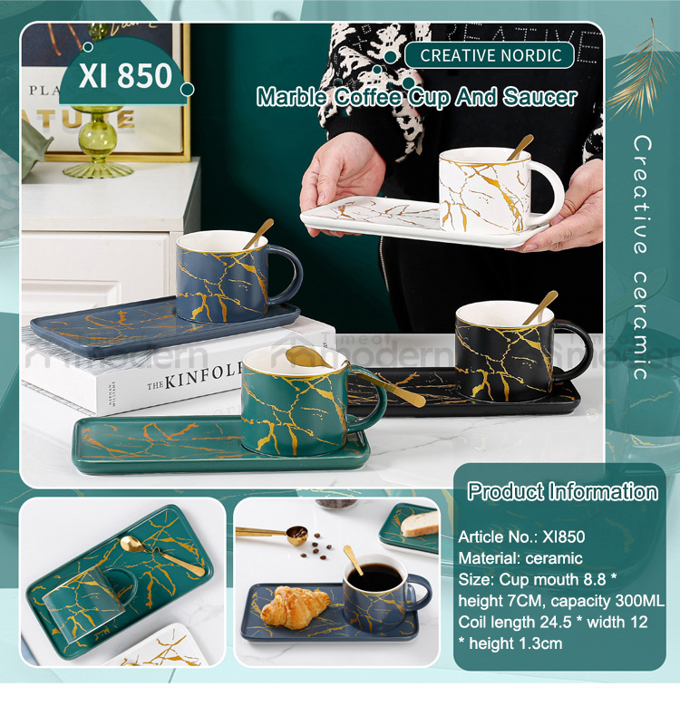 Elevate your tea and snack time with this modern coffee cup and saucer set featuring a distinctive marbled design. The sleek mug and perfectly coordinated saucer add a touch of style to your home, making it an ideal choice for afternoon tea and delightful snacking moments.