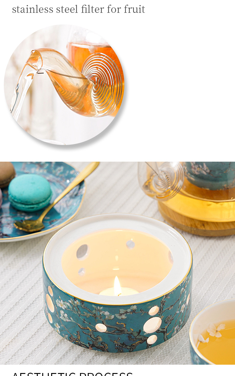| PACKAGING CONTENT | 1 Glass Tea Pot(With Infuser), 1 Warmer Base, 6 Cups, 6 Saucers, 1 Gold Plated Bird Cage Shelf(Cup Holder) |
