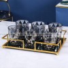 Discover the versatility of our heat-resistant glass tumblers set crafted from borosilicate glass, ensuring a lead-free and safe experience. This collection offers 12 options, including cups with a 300 ml capacity, a holder, and a convenient tray.